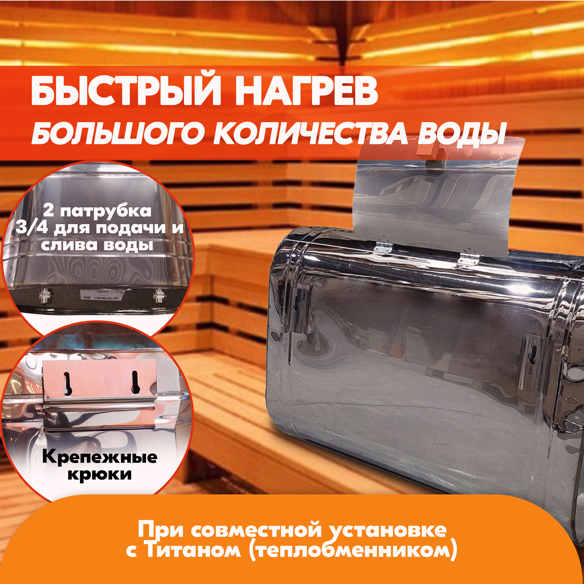Для перехода к теплообменнику титан для сбора системы «теплообменник + навесной бак» просто наберите артикул TS.BAK.TTN.0115.75914 в поиске Озон.