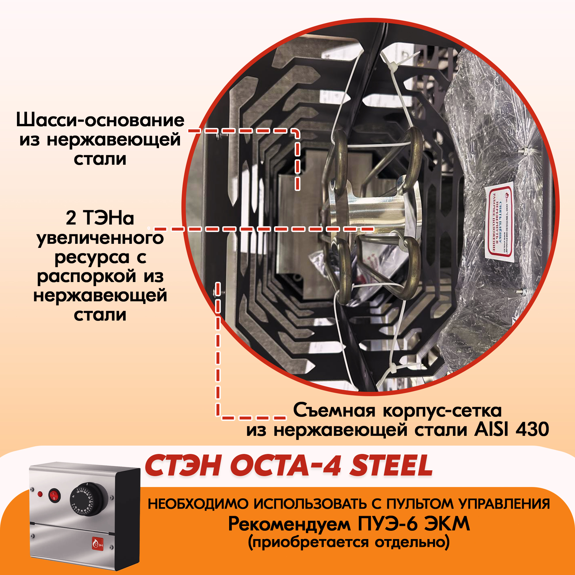 Электрическая каменка СТЭН ЭКМ 4 Octa steel в Березниках | Доставка по России