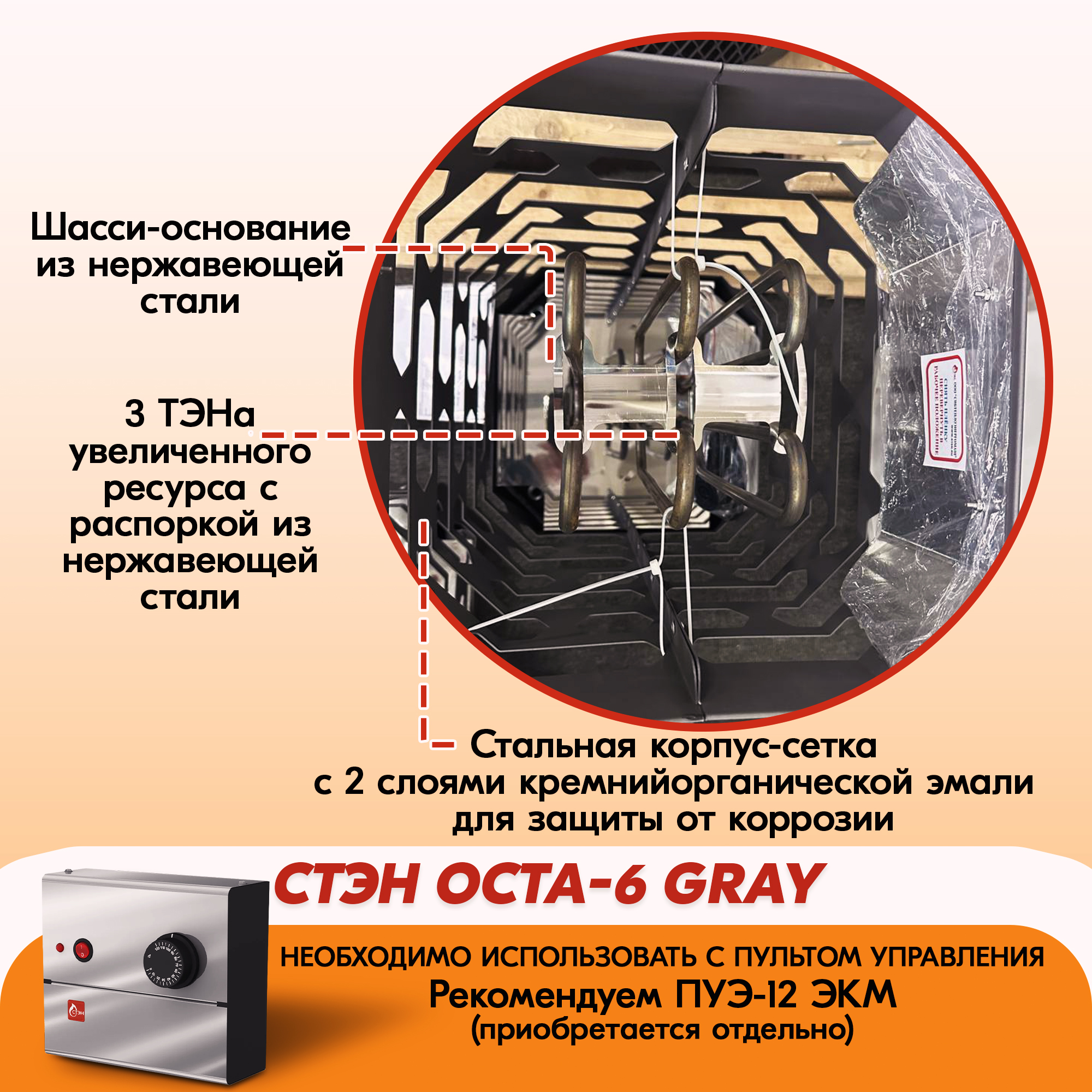 Электрическая каменка СТЭН ЭКМ 6 Octa gray в Березниках | Доставка по России