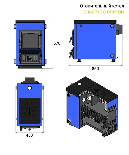 Отопительный водогрейный котёл «Эльбрус с плитой» предназначен для теплоснабжения индивидуальных жилых домов и зданий коммунально-бытового назначения, оборудованных системами водяного отопления с естественной или принудительной циркуляцией, в открытых и закрытых системах отопления.