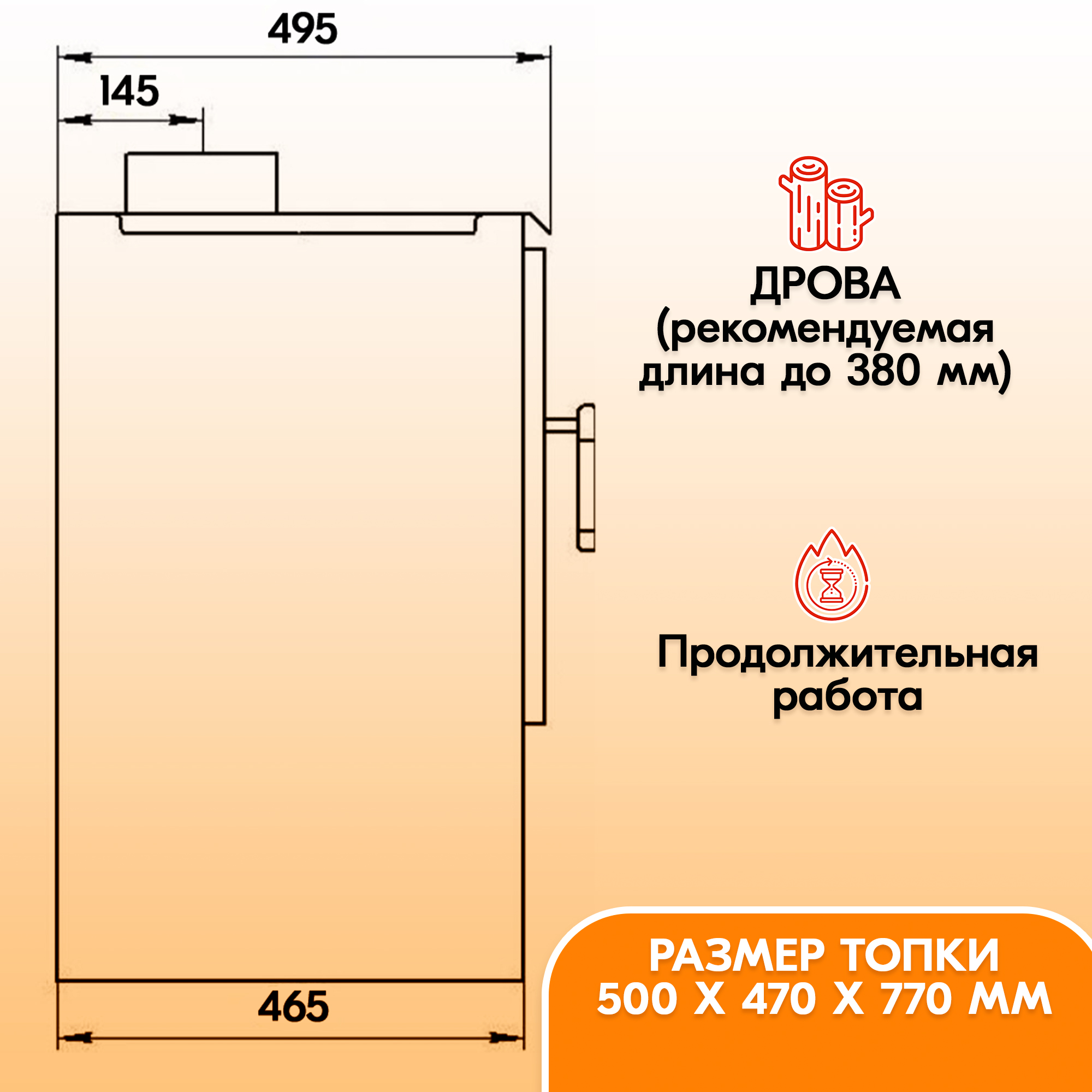 А если по-простому, в металлическую печь достаточно заложить дрова длиной до 38 см 1-2 раза в сутки, и можно забыть о холоде за окном.