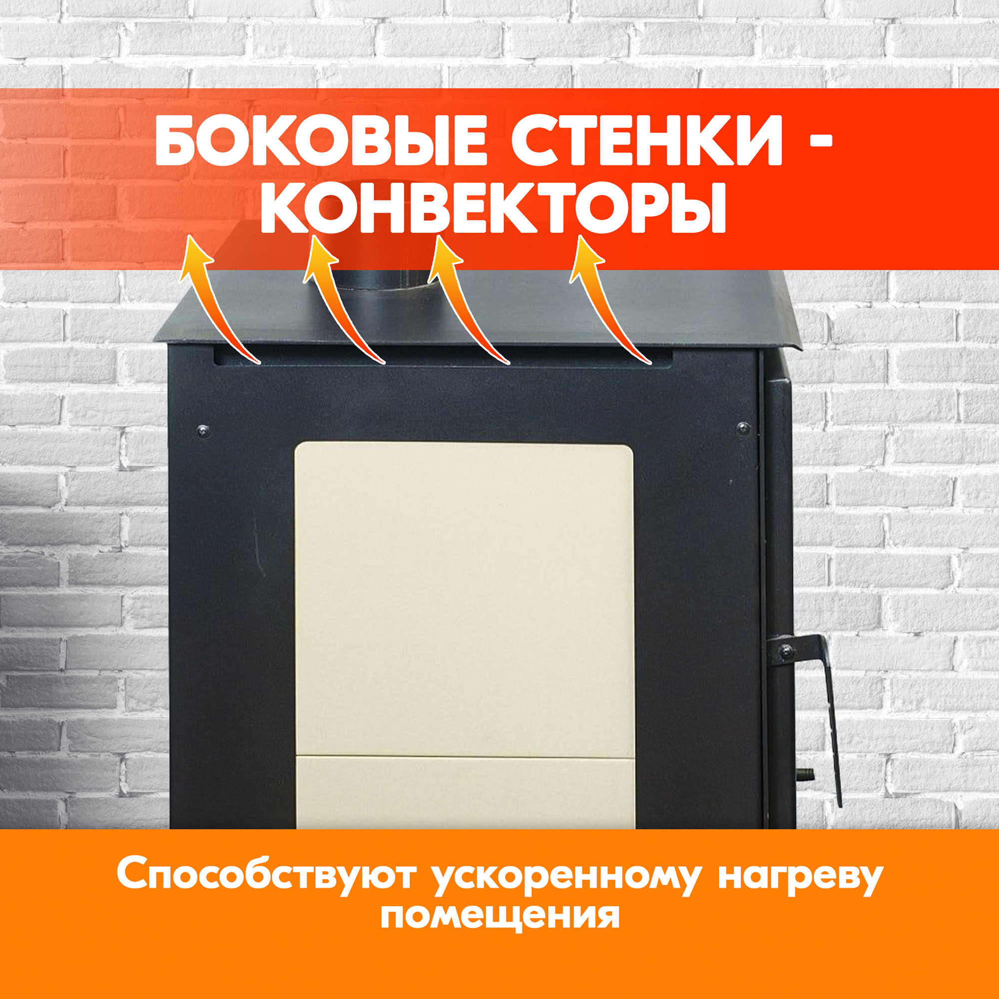 Конвекторы создают конвекционную тягу, что ускоряет нагрев помещения и снижает тепловую нагрузку на стенки топки, тем самым охлаждая ее.