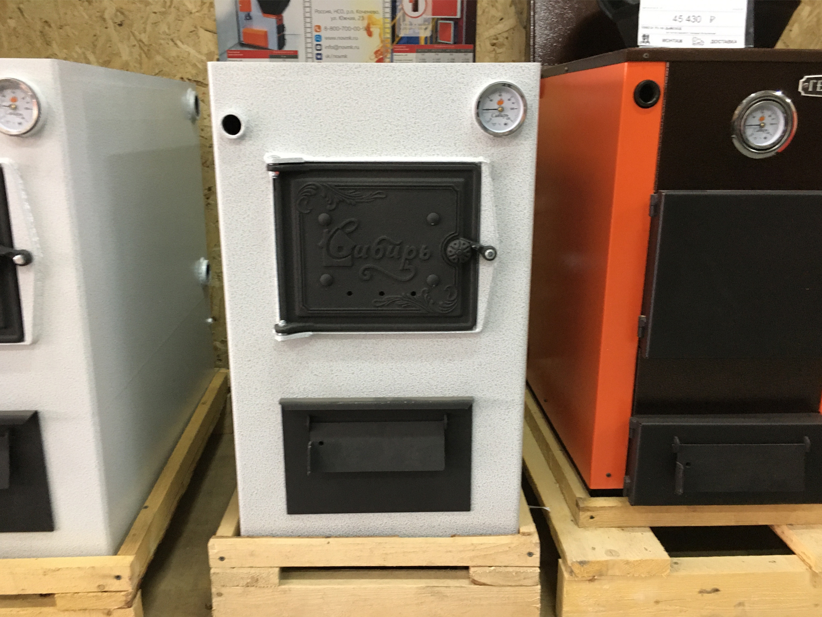 Котел "Сибирь КВО" 15 кВт функционирует на твердом топливе: дрова, прессованные брикеты, уголь и предназначен для систем отопления загородных домов, оборудованных водяным отоплением с естественной или принудительной циркуляцией.