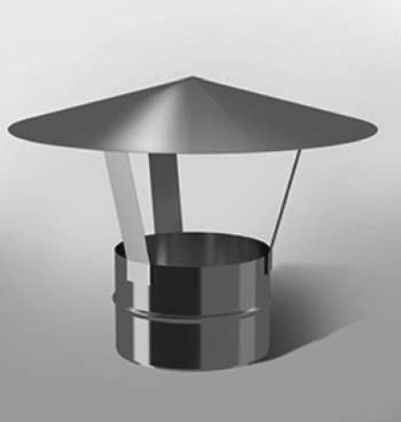Защитный зонт является верхушкой колпака, который по внешнему виду может представлять собой конус, пирамиду, полукруг или другие, более сложные конструкции и формы. Функции зонта:предотвращение попадания атмосферной воды или снега внутрь дымоотвода. предотвращение разрушения материала, а наличие специальных канавок позволяет своевременно отводить весь скапливающийся конденсат;наличие зонта не позволяет попадать в дымоход насекомым, животным и птицам, листьям и другим предметам, заносимым порывами ветра.