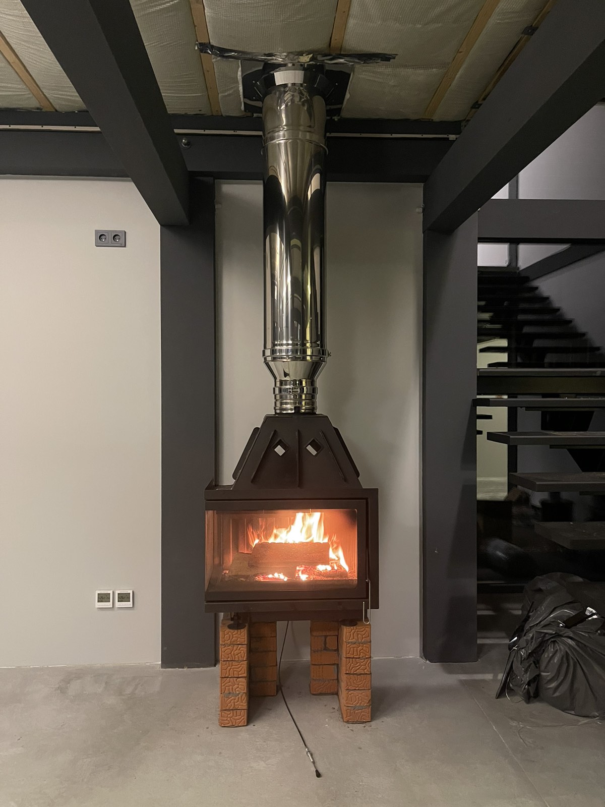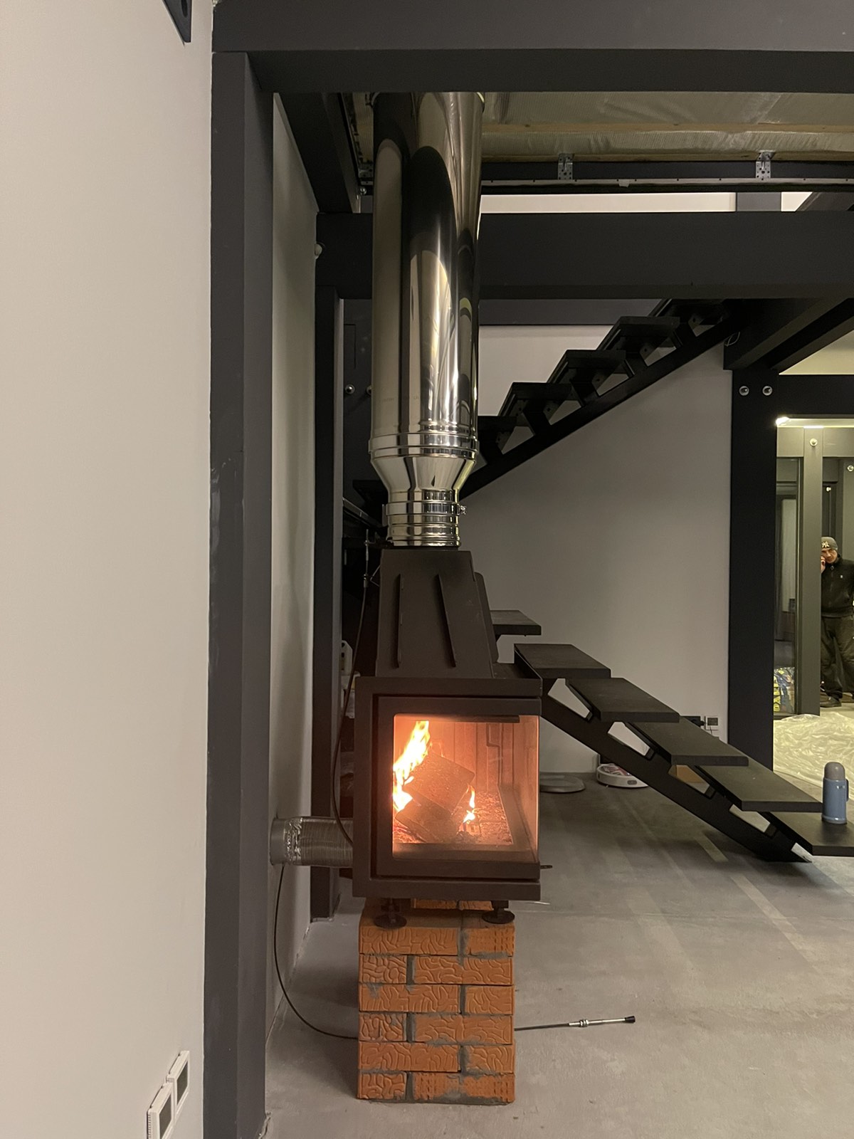 Монтаж большой топки каминной Альфа 700LB с установкой дымохода Теплов и Сухов