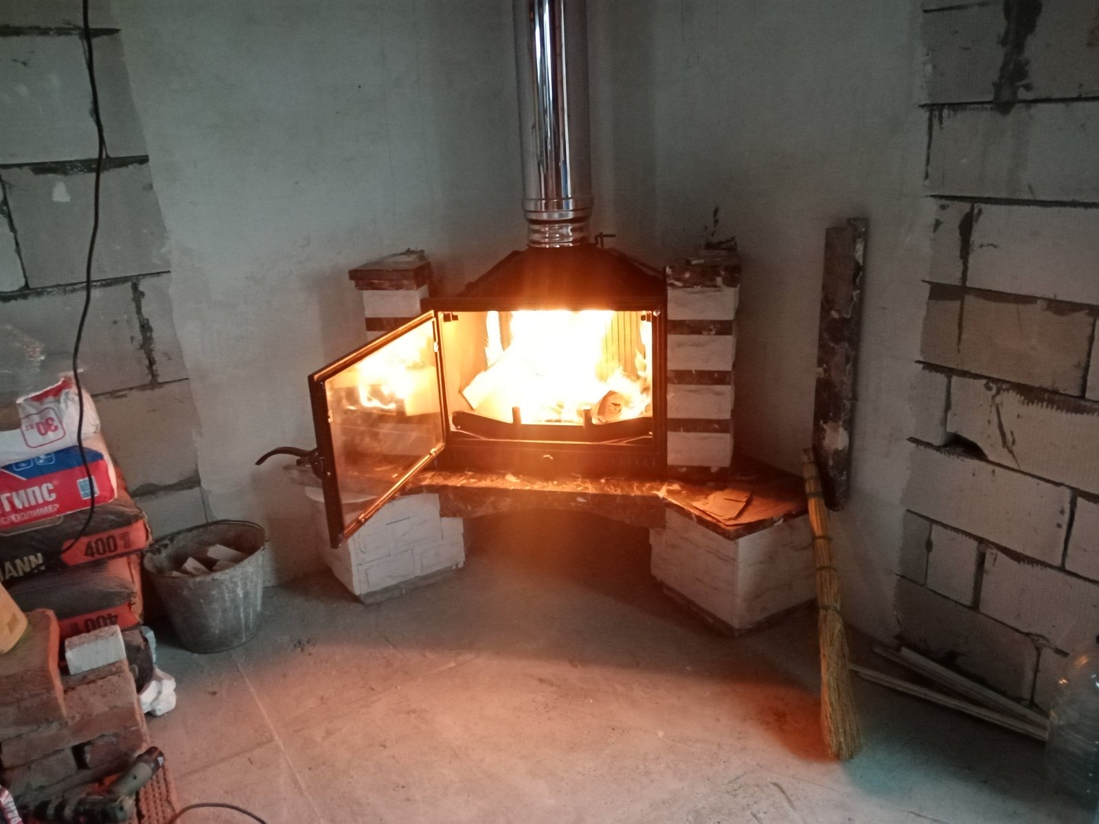 Установка каминой топки и монтаж дымохода Теплов и Сухов под отделку
