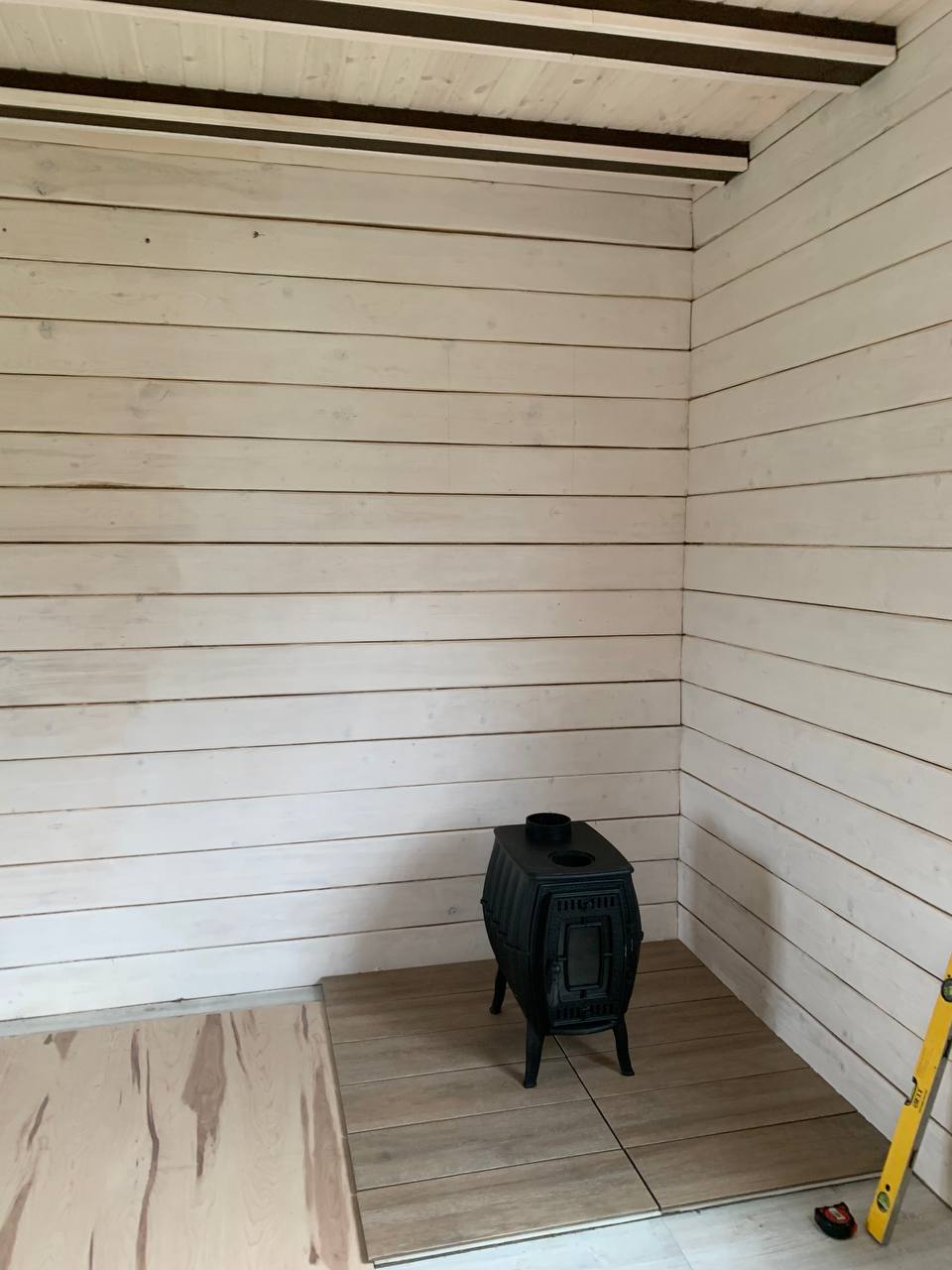 Установка печи-камина Бахтинка и монтаж дымохода.